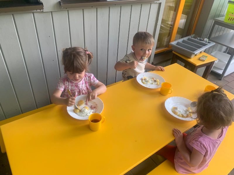 Gern und oft nutzen wir dafür auch den nahegelegenen Wald. Kinder lernen dabei viel über ihre Umwelt, sich auf unterschiedlichen Untergründen zu bewegen, über sich selbst, ihren Körper, ihre ganz eigenen Fähigkeiten und schafft Selbstvertrauen.