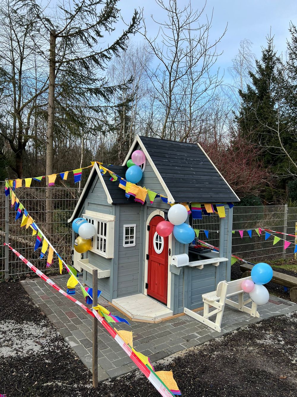 Ein neues Spielhaus~ und es sieht fast wie ein echtes Haus aus, ist liebevoll gestaltet und bietet mit einer kleinen Küche, Blumenkasten vorm Fenster und sogar einer Türklingel viele Spieloptionen.